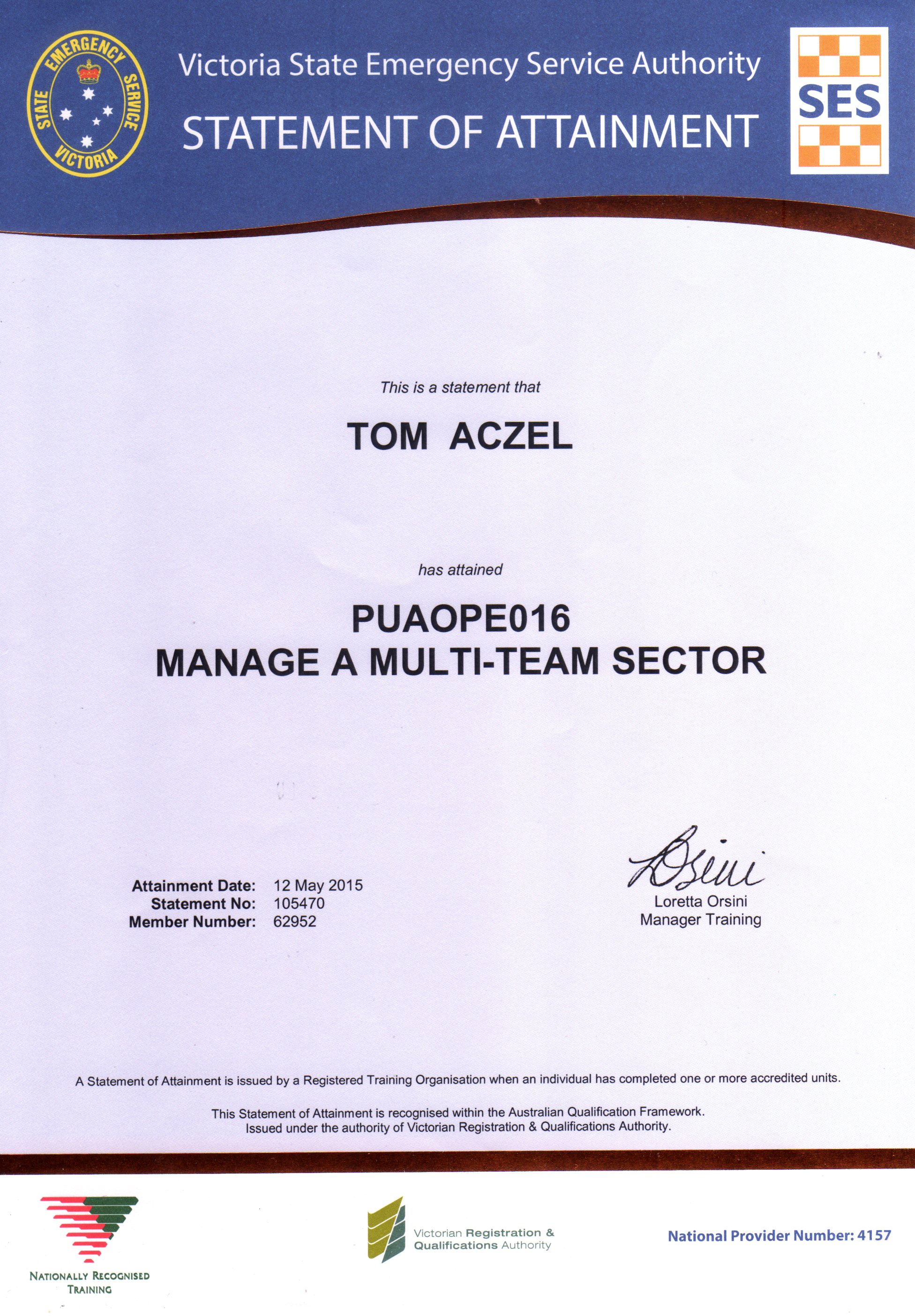 PUAOPE016 – MANAGE A MULTI TEAM SECTOR / AIIMS SECTOR/DIVISION COMMANDER